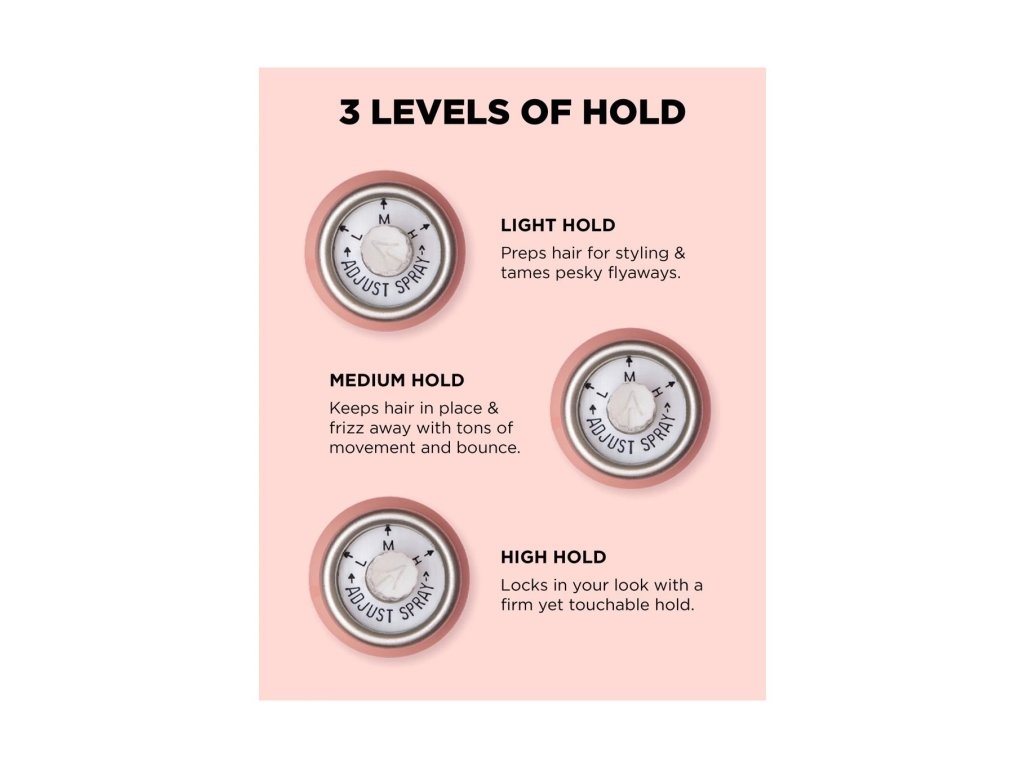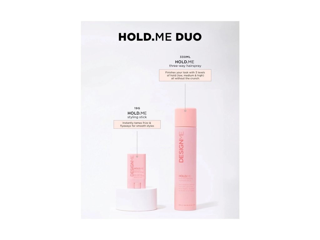 Lak na vlasy 3v1 HOLD.ME nabízí tři úrovně držení jednoduchým otočením trysky - nízkou, střední a vysokou. Stylingová tyčinka HOLD.ME okamžitě vyhlazuje poletující vlasy, kontroluje krepatění a vytváří elegantní a uhlazené účesy. Společně toto kombo poskytuje rychlý a elegantní styl, který je ideální pro jakoukoli událost nebo příležitost.