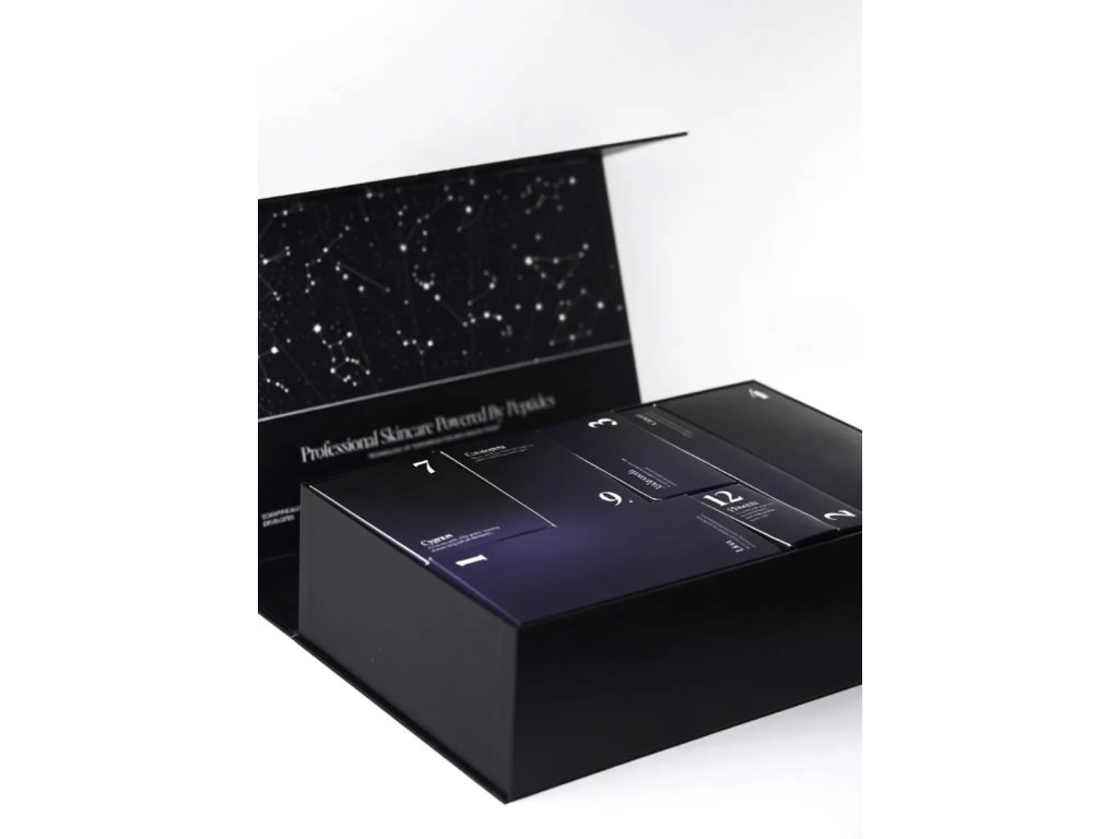 Každá z 24 krabiček představuje souhvězdí nebo znamení zvěrokruhu, propojující krásu, vesmír a osobní rituál péče. -Kalendář je navržen v elegantním kosmickém stylu – v tónech temného vesmíru se stříbrnými akcenty a jemným leskem hvězd, které ožívají při otevření každého okénka. Tento výjimečný design dělá z kalendáře nejen skvělý dárek, ale i adventní dekoraci, která rozzáří Váš kosmetický koutek.