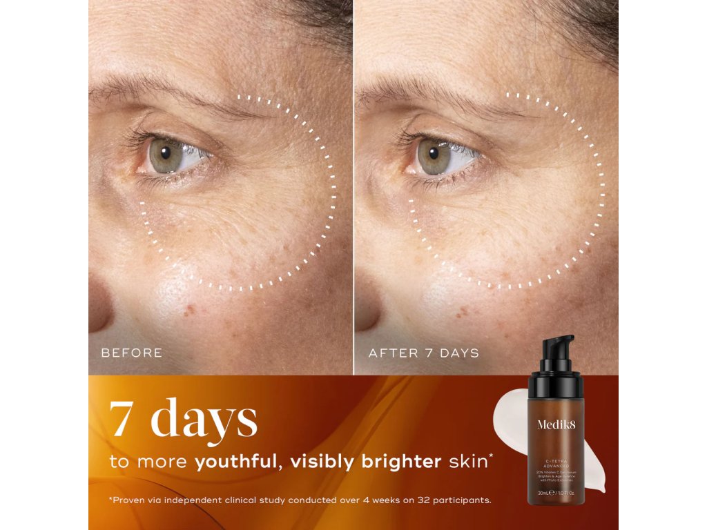 C-TETRA ADVANCED je nejúčinnější sérum s vitamínem C v portfoliu Medik8. Díky 20 % stabilizovanému vitamínu C ve formě THDA viditelně rozjasňuje pleť, zpevňuje ji a pomáhá redukovat jemné vrásky, a to bez podráždění. Kombinace s regeneračními rostlinnými exozomy a všestranným antioxidantem acetyl zingeronem zajišťuje nejen antioxidační ochranu, ale i podporu kožní bariéry. Lehká gelová textura se rychle vstřebává, je ideální pro každodenní použití a vhodná i pro citlivější typy pleti.