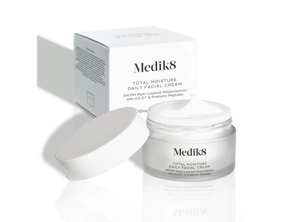 TOTAL MOISTURE DAILY FACIAL CREAM od Medik8 je lehký hydratační krém pro ranní i večerní péči. Vyživuje pleť a zanechává ji jemnou, vyhlazenou a hloubkově hydratovanou. Podle spotřebitelské studie uvedlo 96 % účastníků o krému, že má pečující texturu* a pokožce dodává zdravý jas, aniž by ji mastil nebo zanechával na pleti mastný pocit.