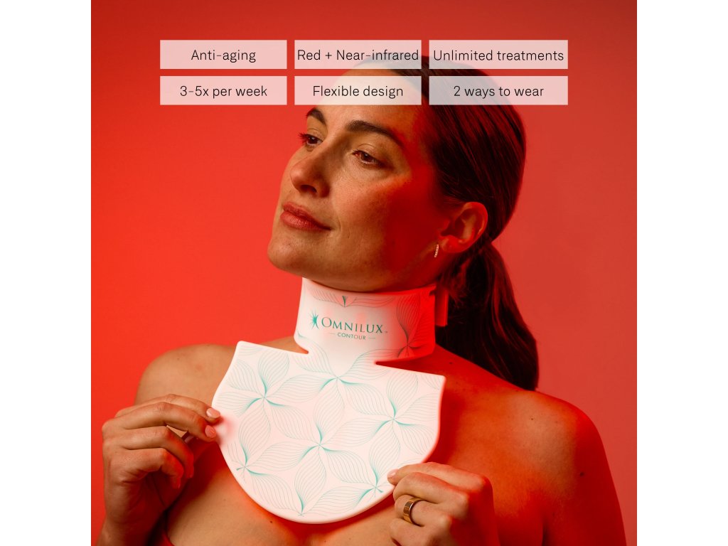 Omnilux Contour Neck & Décolleté je originální flexibilní, patentovaný přístroj pro světelnou terapii speciálně navržený pro ošetření krku a hrudníku. Se dvěma vlnovými délkami červeného a blízkého infračerveného světla, optimalizovaným energetickým výstupem a recenzovanými studiemi potvrzujícími jeho výsledky je Contour Neck & Décolleté navržen a vyroben pomocí patentované technologie lékařských zařízení Omnilux se zlatým standardem.